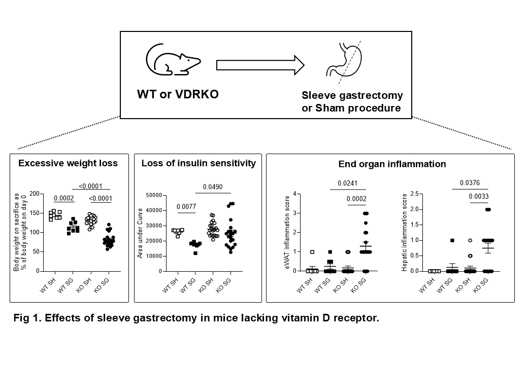 Conclusion VDR is necessary for metabolic health after SG due to its role in regulation of energy expenditure, insulin sensitivity, adipose tissue and immune function.
